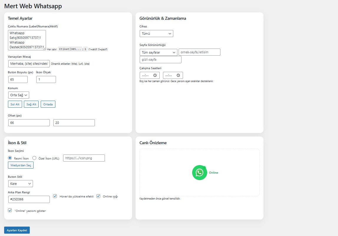 • İstersen özel ikon URL (Medya’dan seç butonu hazır).